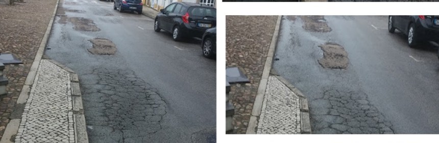 É possível perceber quando os buracos começam a formar-se se vir algumas rachaduras no alcatrão (como na imagem). Felizmente, esses buracos não costumam ser muito profundos, apesar de em alguns casos chegarem a ter largura apreciável e poderem prejudicar a suspensão do carro.  A Câmara procedeu e bem, naquilo que é o seu dever, ao arranjo de alguns espaços de estrada na vila. Deixou este, o mais evidente. Até quando?